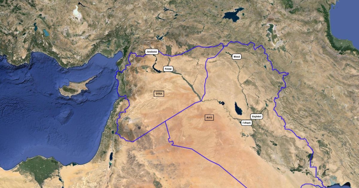 Basic map of Syria, Iraq and relevant cities.