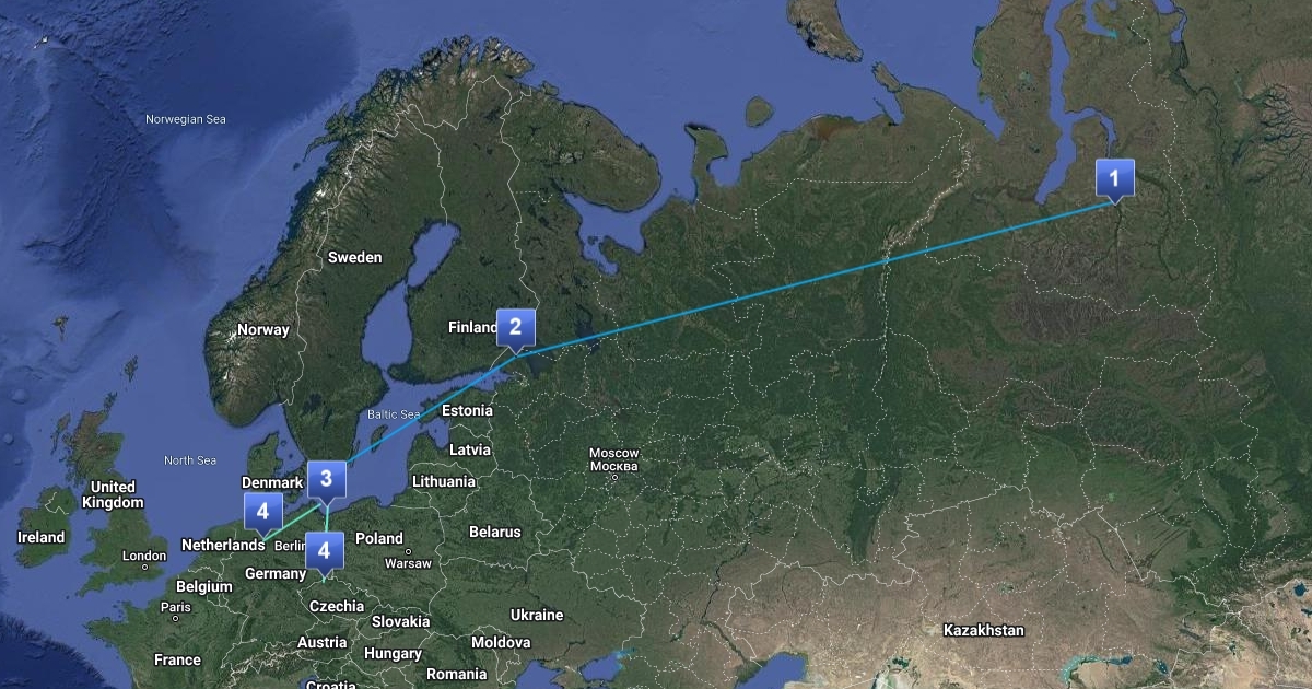 Erdgasweg von Russland nach Deutschland über Nord Stream 1