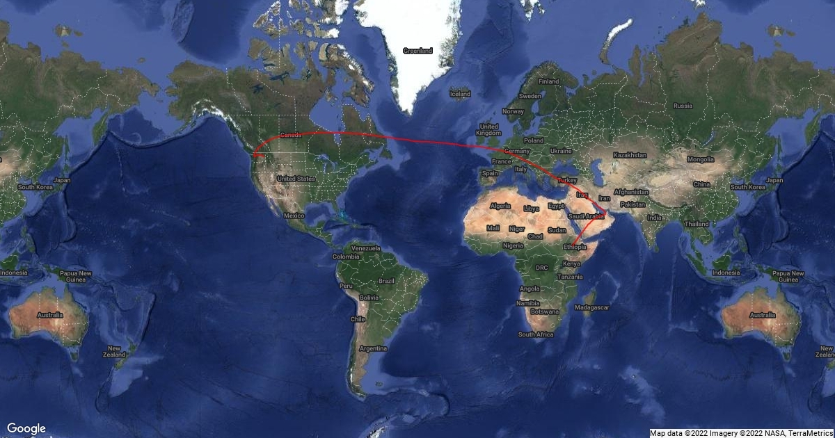 Route from Spkane to Ethiopia