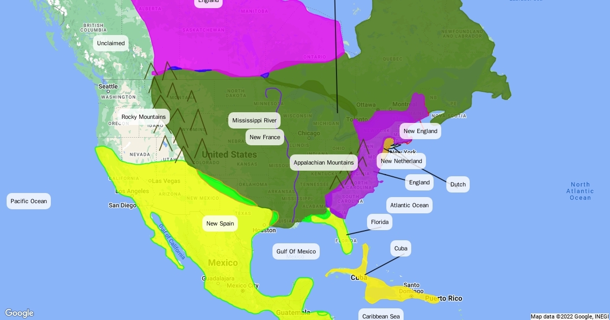 European North American Colonies 1776