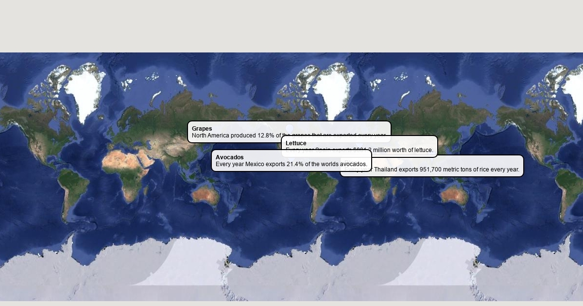 Map with places that export food, clothing etc