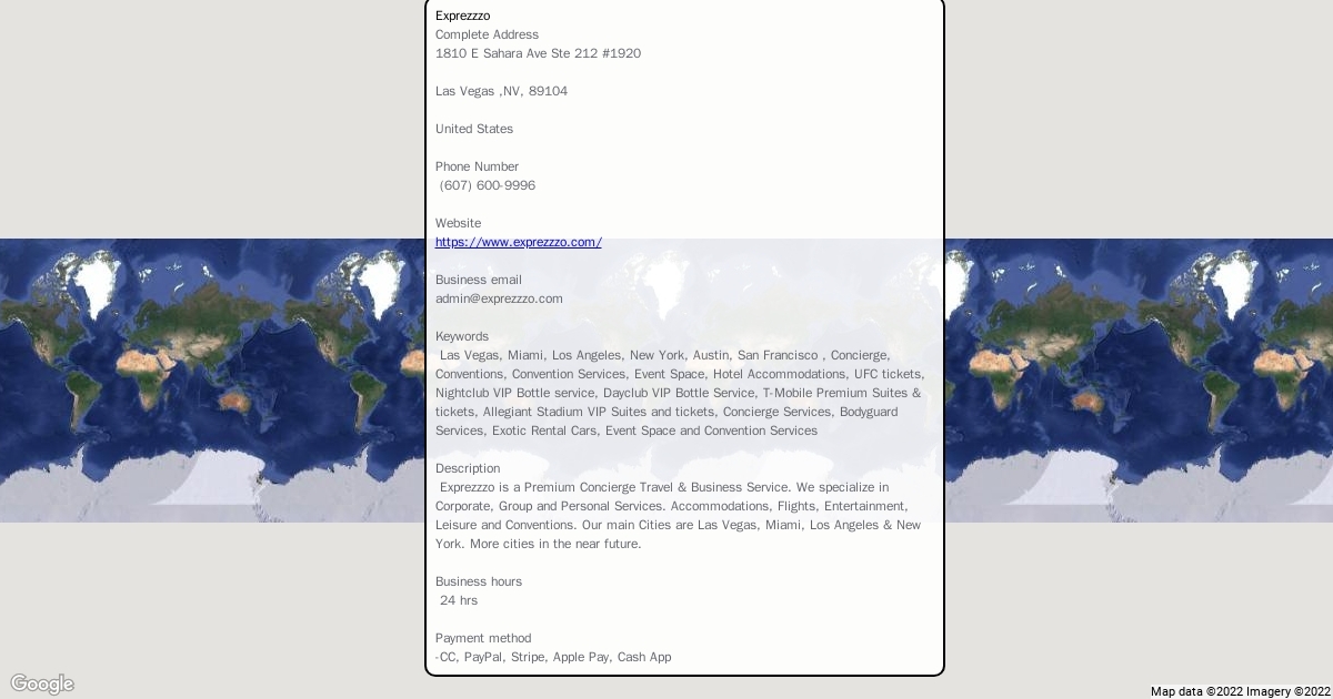 Exprezzzo is a Premium Concierge Travel & Business Service. We specialize in Corporate, Group and Personal Services. Accommodations, Flights, Entertainment, Leisure and Conventions. Our main Cities are Las Vegas, Miami, Los Angeles & New York. More cities in the near future.