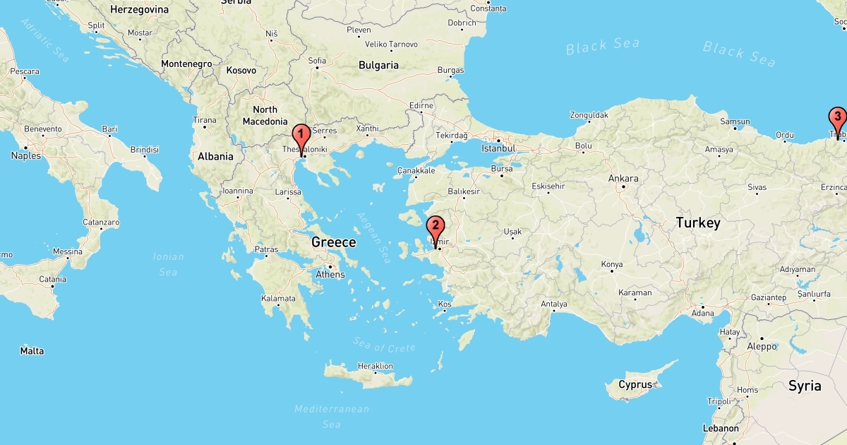Map showing Salonica, Smyrna and Trebizond