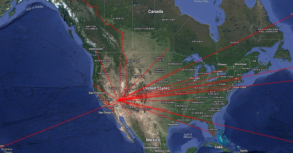 Info gathered from www.reddit.com/r/electricdaisycarnival 700+ member discussion group all about EDC Vegas 2012. (Each dot represents a group of avg 6 people)