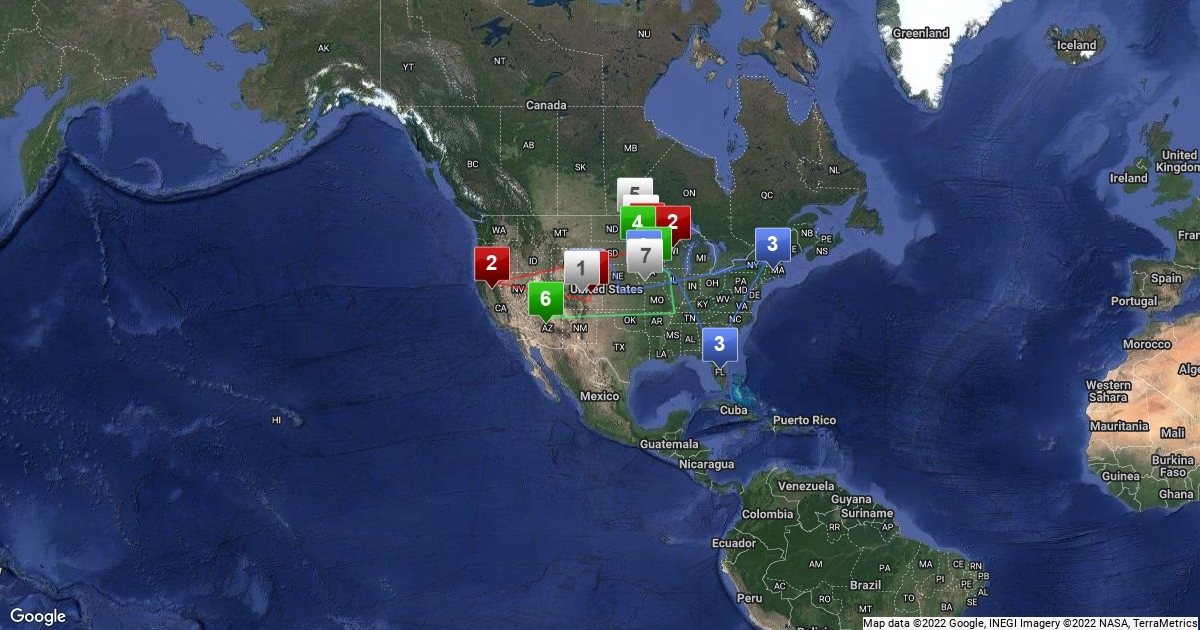 This is a map showing were my family has moved.