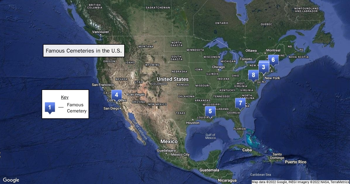 map of famous cemeteries in U.S.