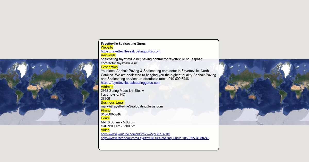 Your local Asphalt Paving & Sealcoating contractor in Fayetteville, North Carolina. We are dedicated to bringing you the highest quality Asphalt Paving and Sealcoating services at affordable rates. 910-600-6946. https://fayettevillesealcoatinggurus.com