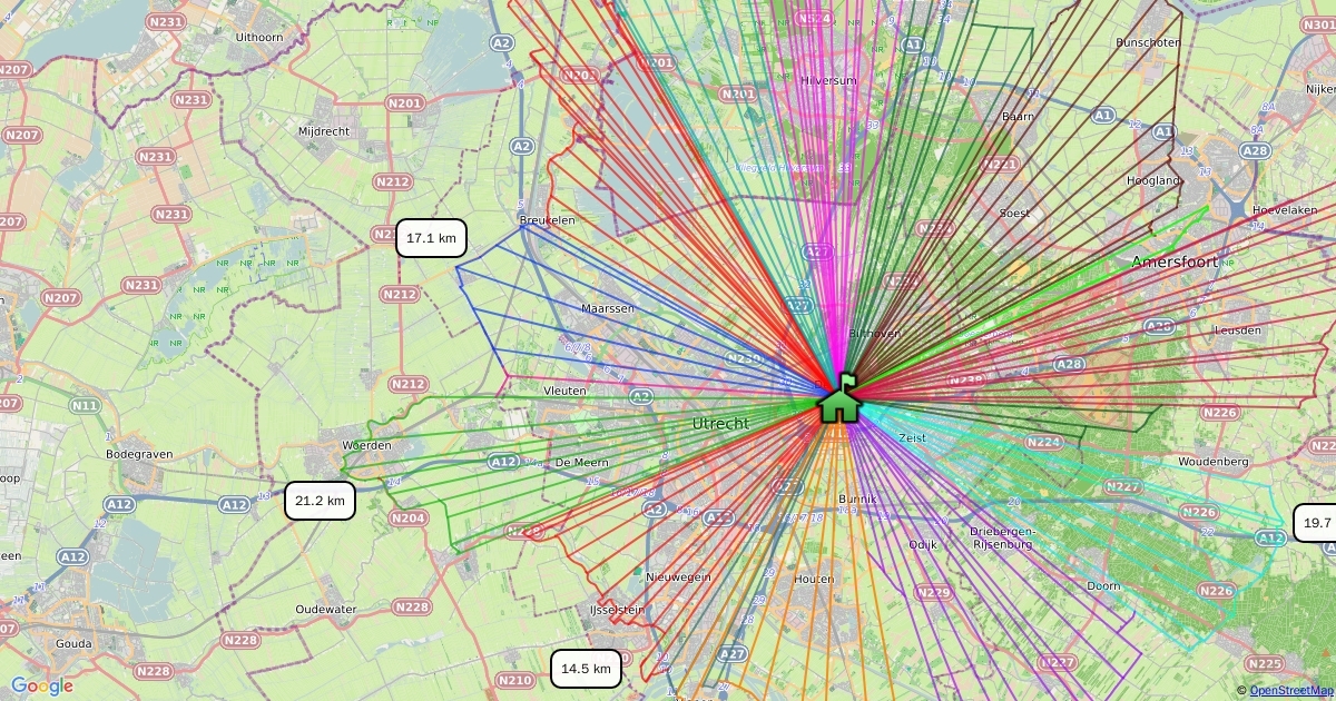 Grootste hemelsbrede afstand voor elke richting