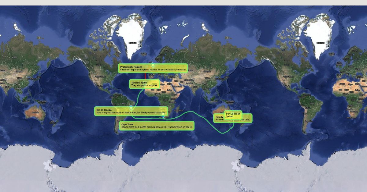 First Fleet travel map