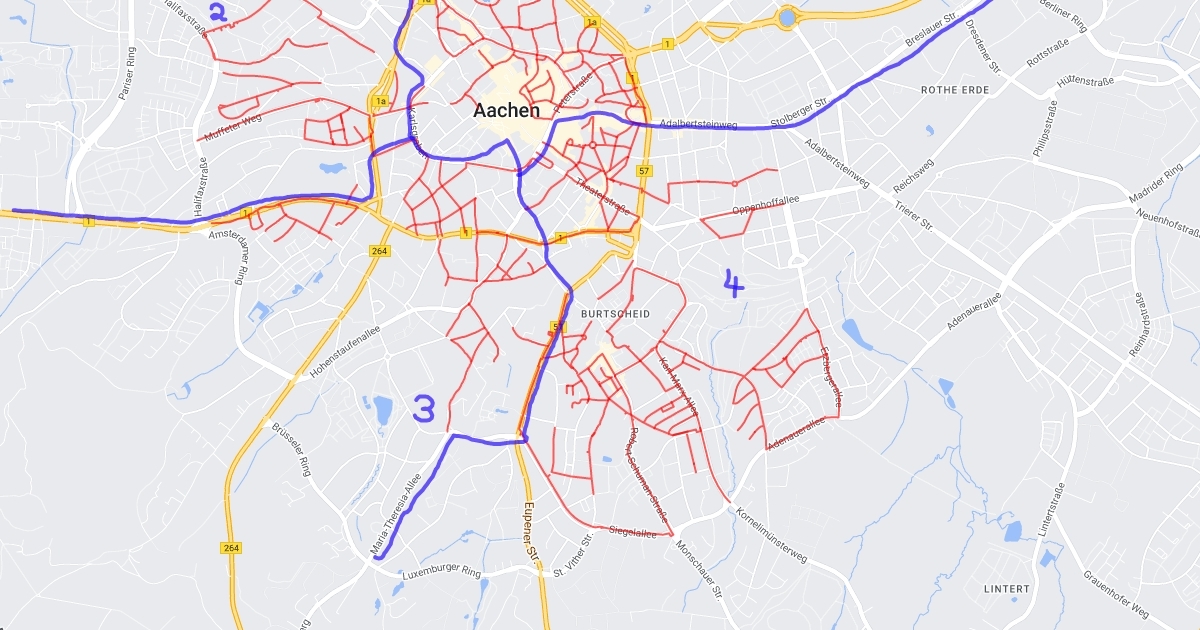 Schon abgelaufene Routen sind hier markiert
