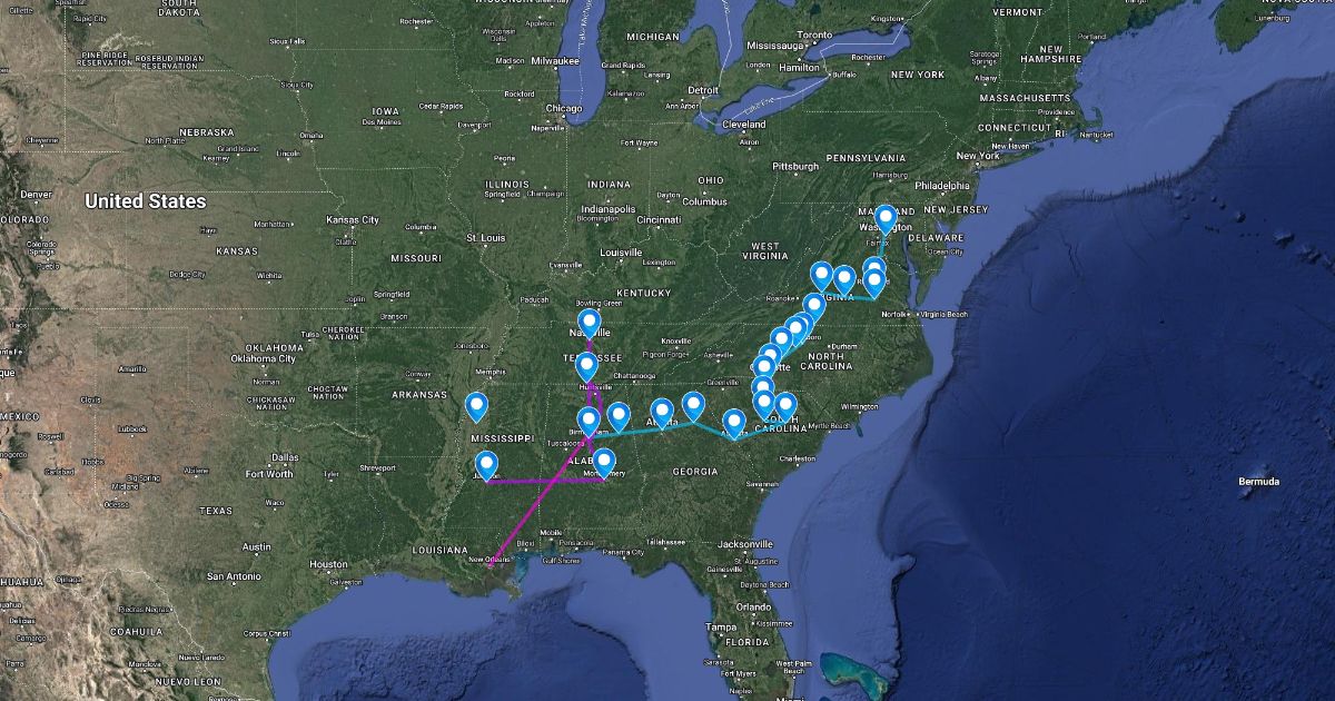 The path of the Freedom Riders