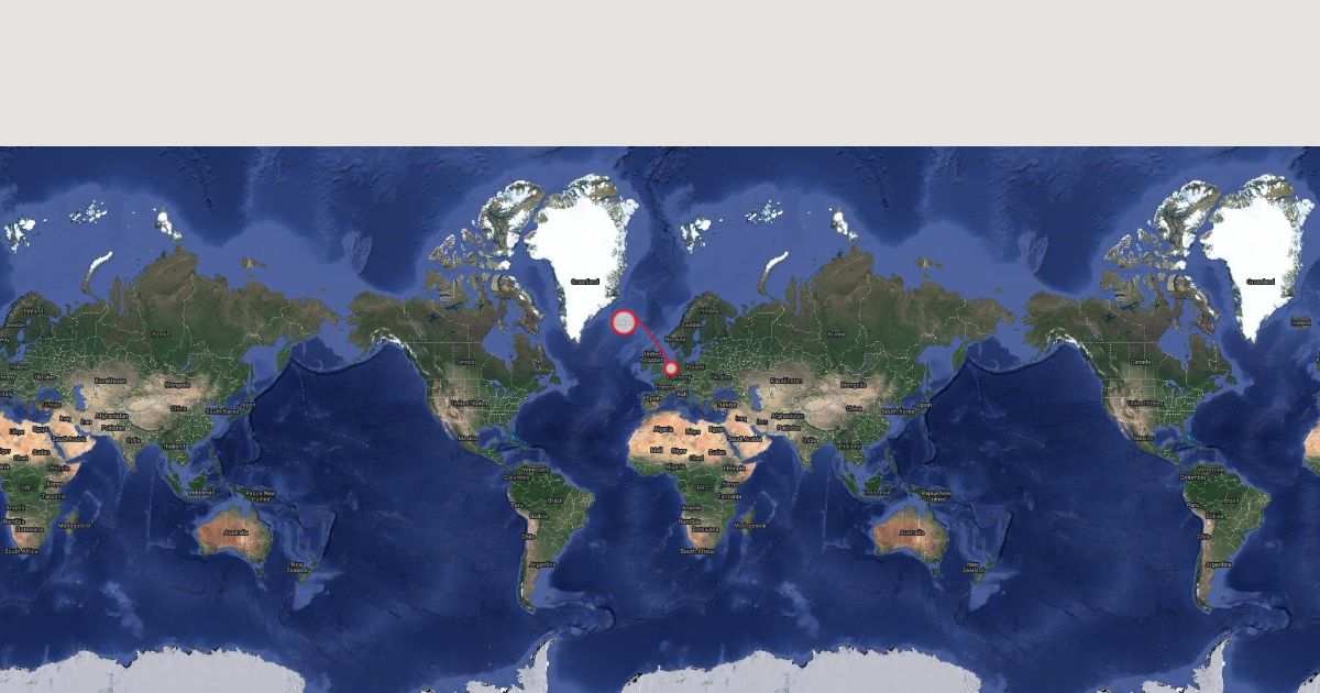 this is a map with a flight from amsterdam to reykjavik