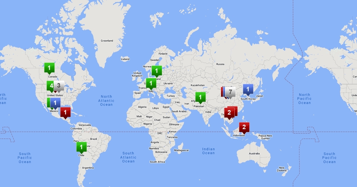 Map demonstrating where 40 items in my house were made.