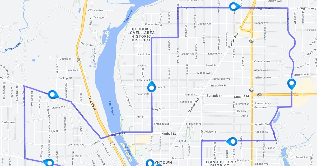 Route of Elgin Full Moon Ride 9-9-17