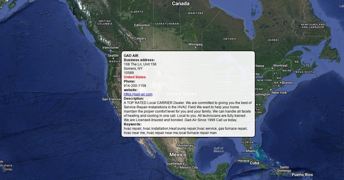 A TOP RATED Local CARRIER Dealer. We are committed to giving you the best of Service-Repair-Installations in the HVAC Field We want to help your home maintain the proper comfort level for you and your family. We can handle all facets of heating and cooling in one call. Local to you. All technicians are fully trained . We are Licensed-Insured and bonded .Gad-Air Since 1999 Call us today.