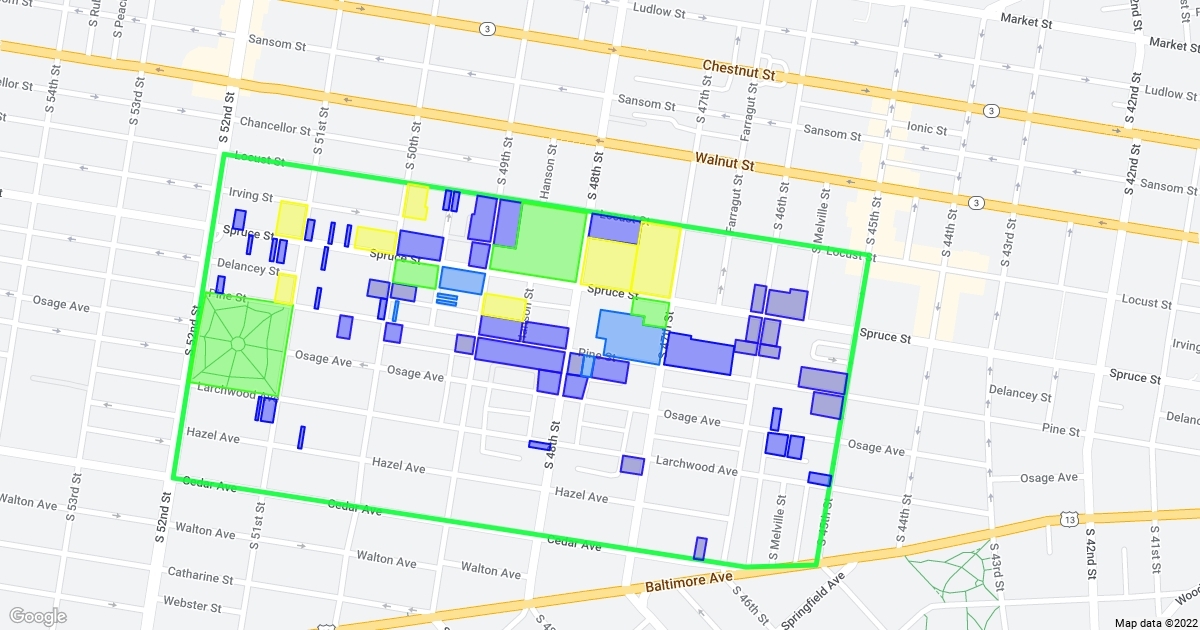 A map of all apartment buildings in Garden Court