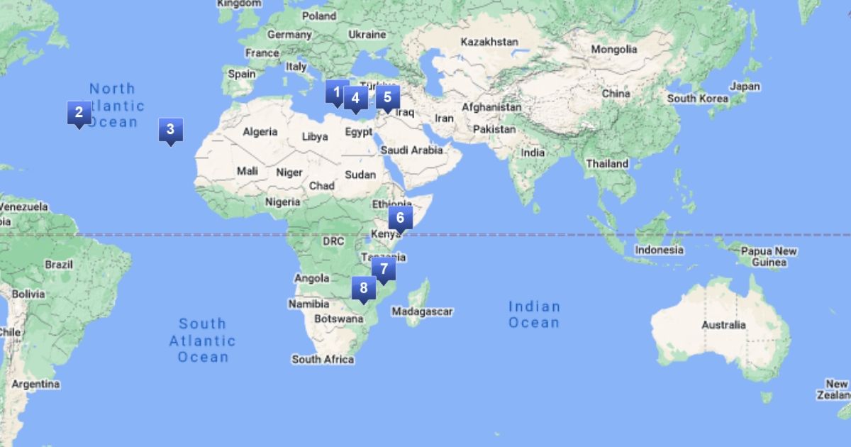 Markers of countries I visited on Nuffield GFP 2018