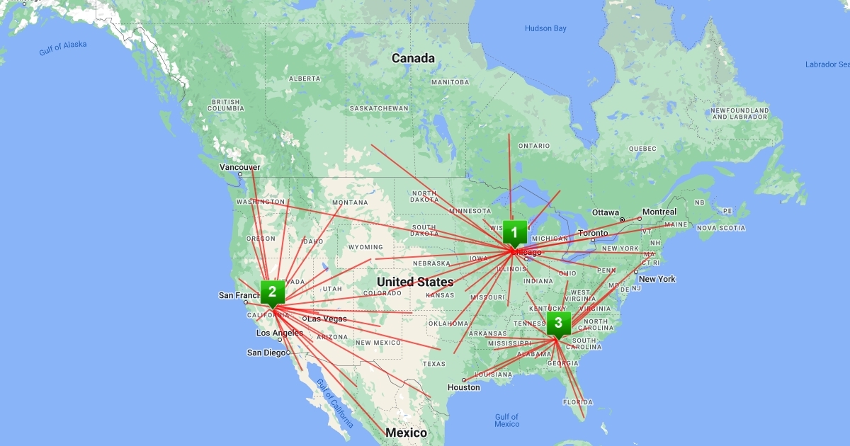 view of freight routes from three GT locations