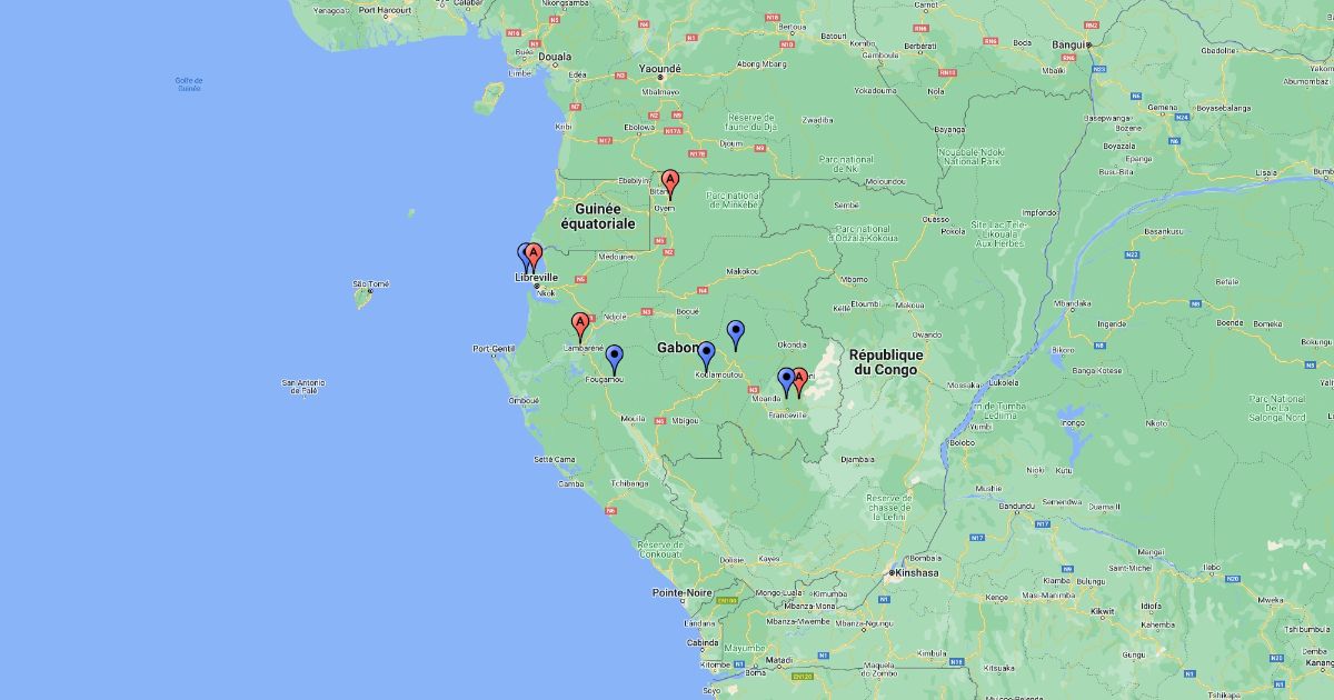 Gabon map Showing cities investigated for fever causes , including malaria