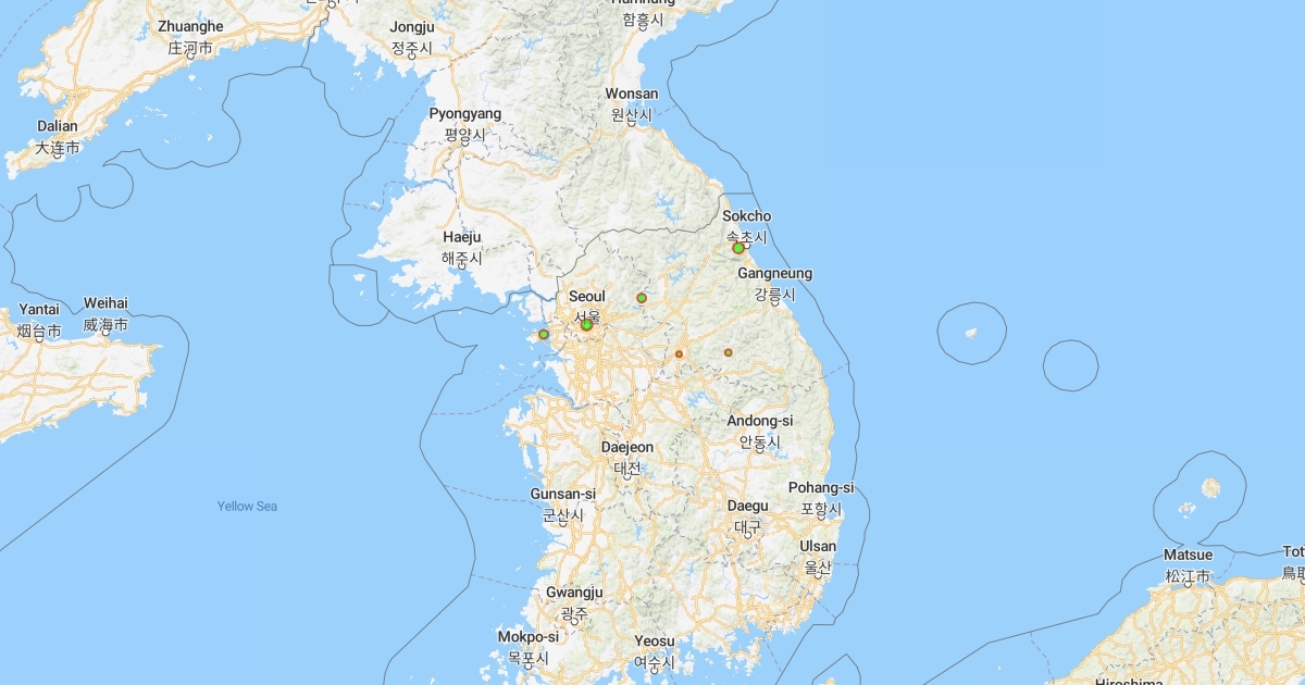 Gapcheong Sokcho Pyeongchang Wonju Seoul