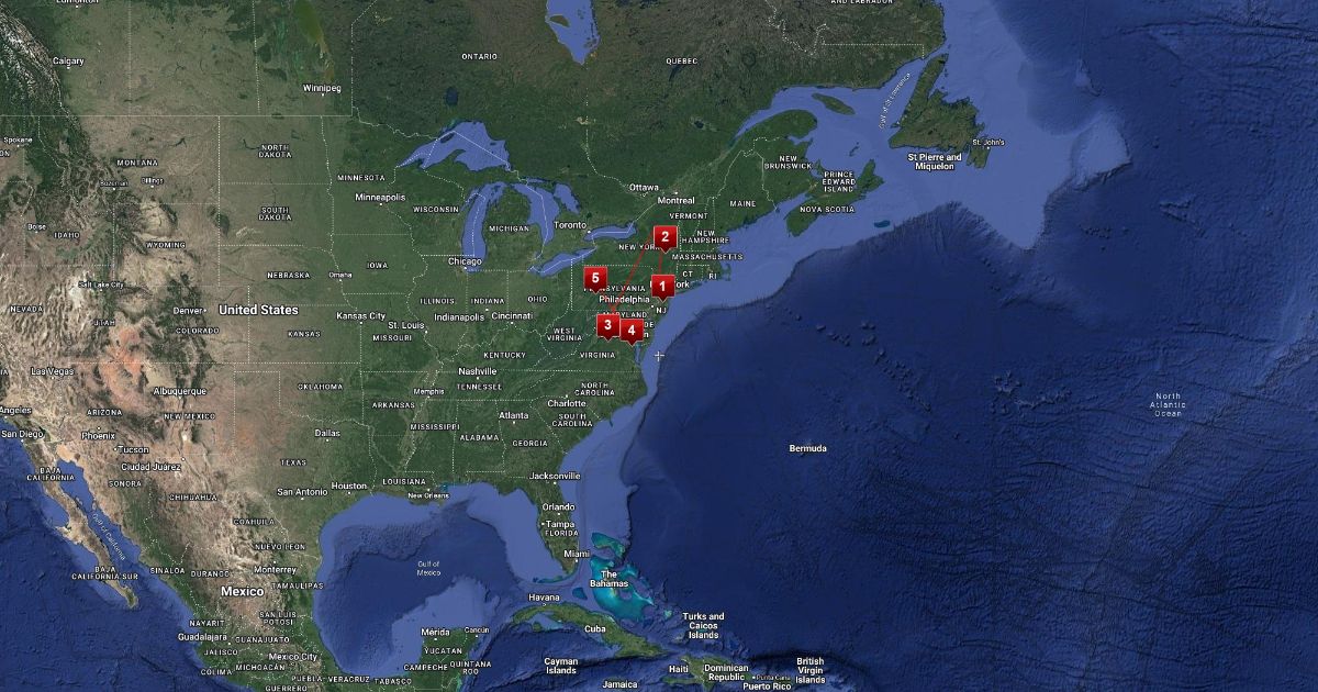 The geocahce that we made started in New Jersey, then went to New York, then VIrginia, Distirct of Columbia, and Pennsylvania