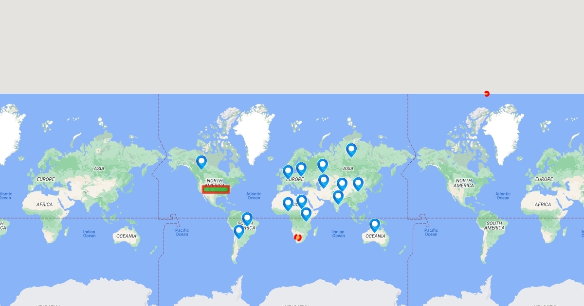 A map showing distribution of common blight of beans across the world as i originated in USA