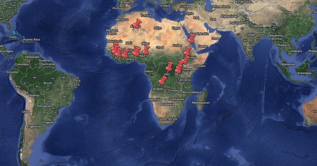 Liberia, Guinea, Nigeria, Sierra Leone, Togo, Cote d’Ivoire, Eritrea, Uganda, Ethiopia, Rwanda, Burundi,Algeria and Angola.