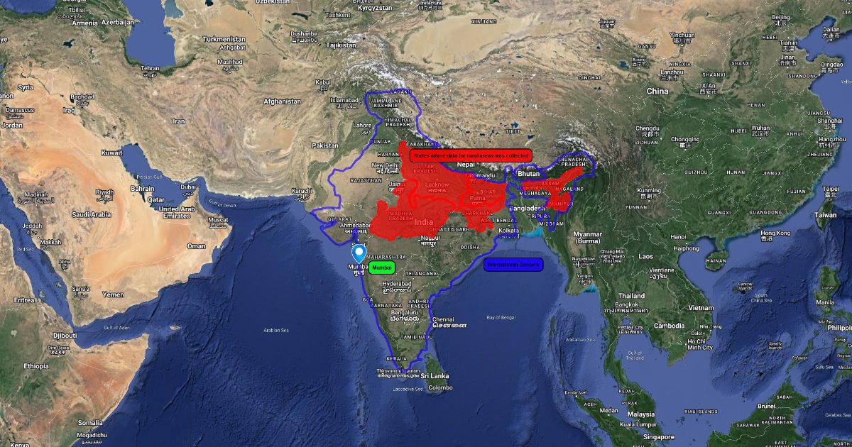 A map of areas where data was collected for a geography assignment