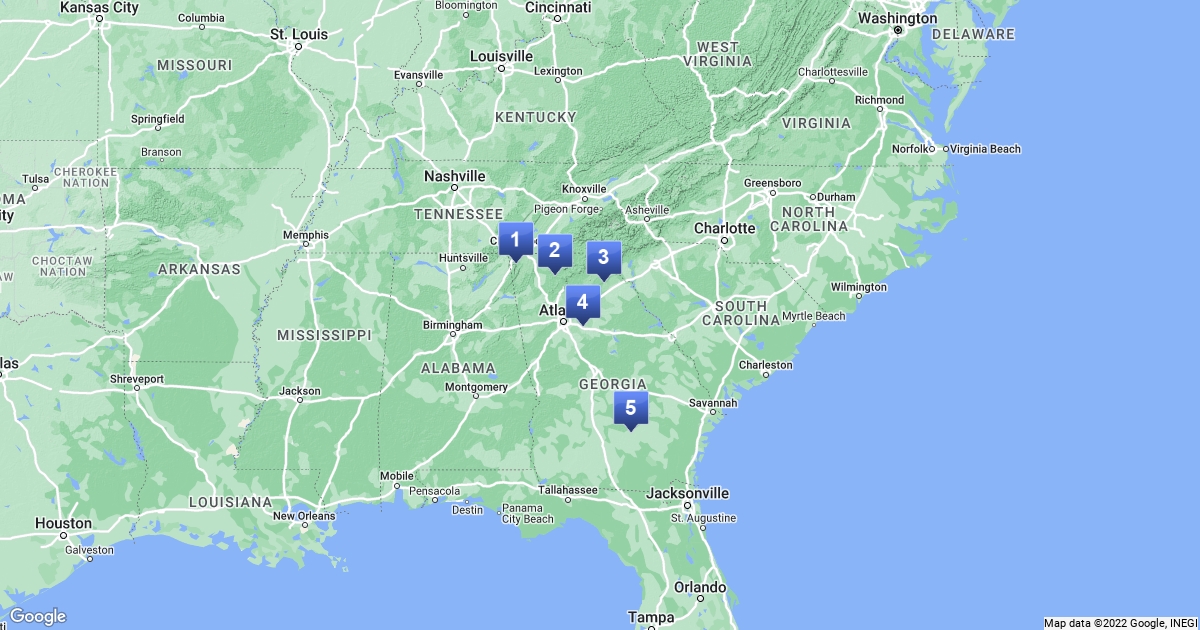 Map of the 5 geographic regions of Georgia