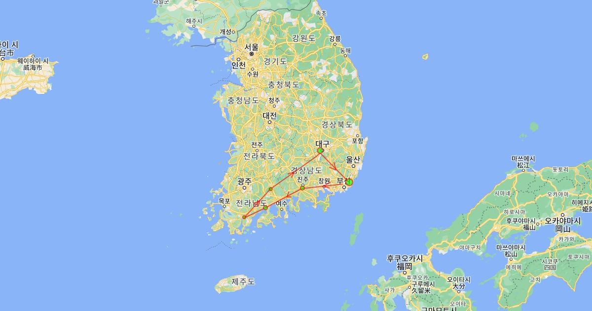 Gimhae Jinju Suncheon Gangjin Mt Jiri Dalseong Busan