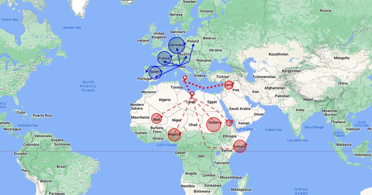Mappa Esplicativa sugli spostamenti dei migranti dall'Africa all'Europa
