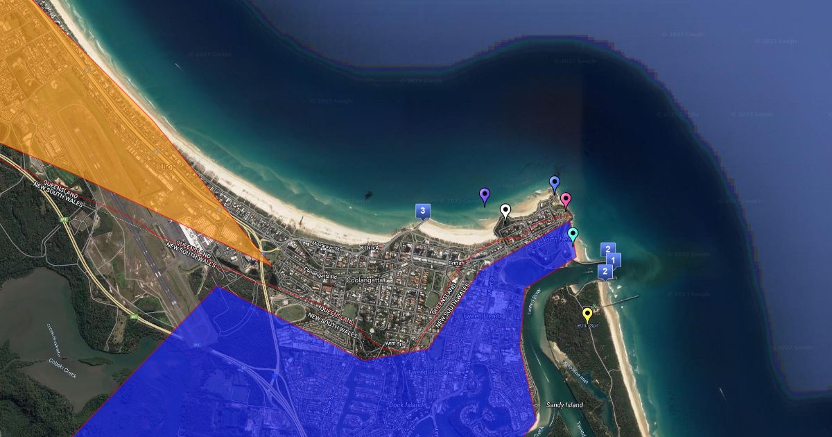 Map of the Gold Coast, QLD and Tweed, NSW in relation to the TRESBP Jetty