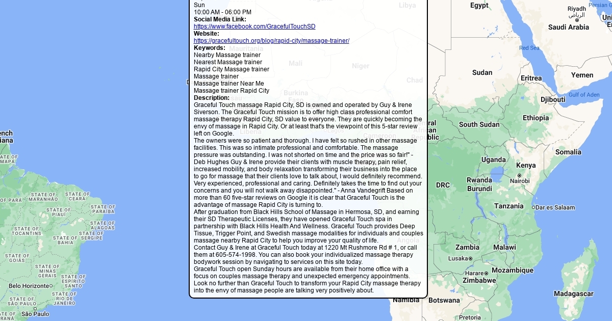 Graceful Touch massage Rapid City, SD is owned and operated by Guy & Irene Siverson. The Graceful Touch mission is to offer high class professional comfort massage therapy Rapid City, SD value to everyone. They are quickly becoming the envy of massage in Rapid City. Or at least that's the viewpoint of this 5-star review left on Google.