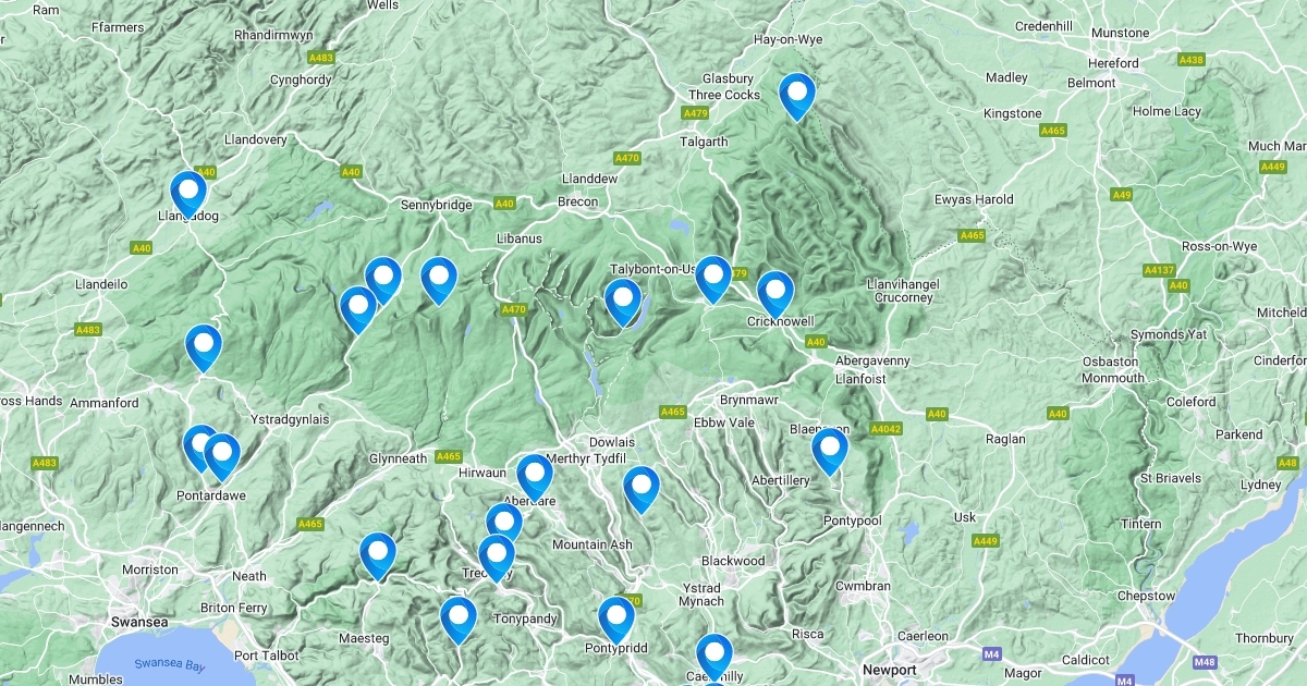 Map of 30 great cycling climbs in South wales