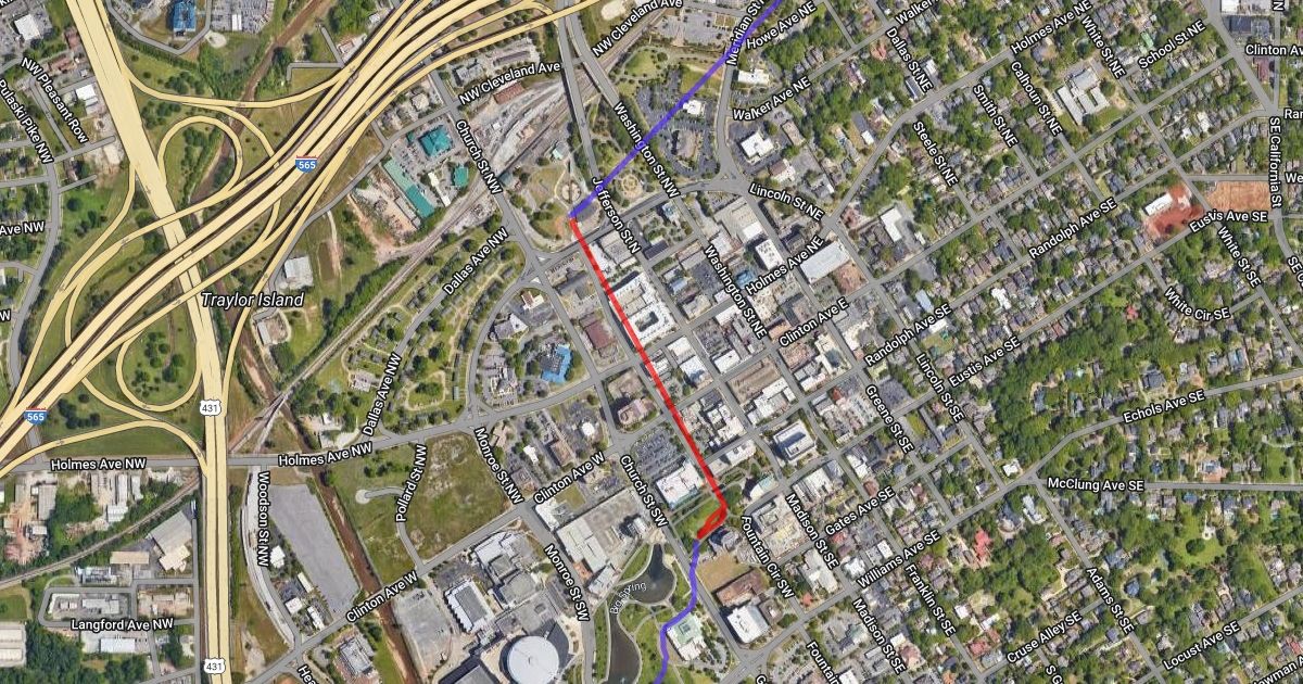 Blue is existing Downtown Greenway; Red is potential Downtown Greenway Connector