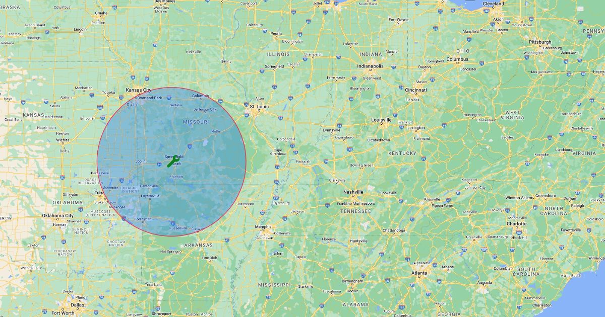 150m radius map