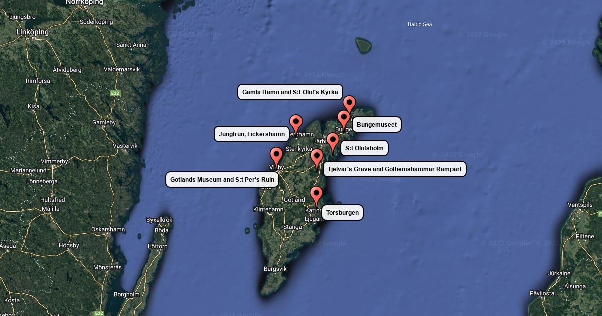 Trail of places on Gotland connected to the myths in the Guta Saga.