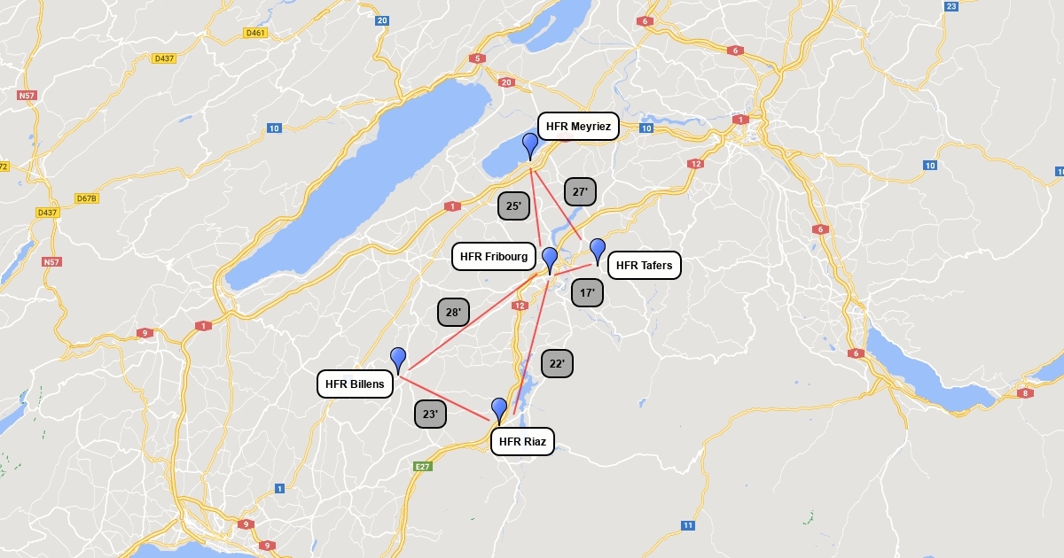 HFR Fribourg sites and travel times