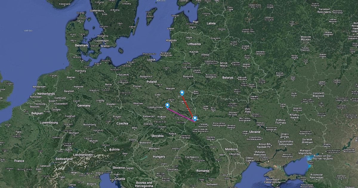 Map of Hannas journy through the holocaust