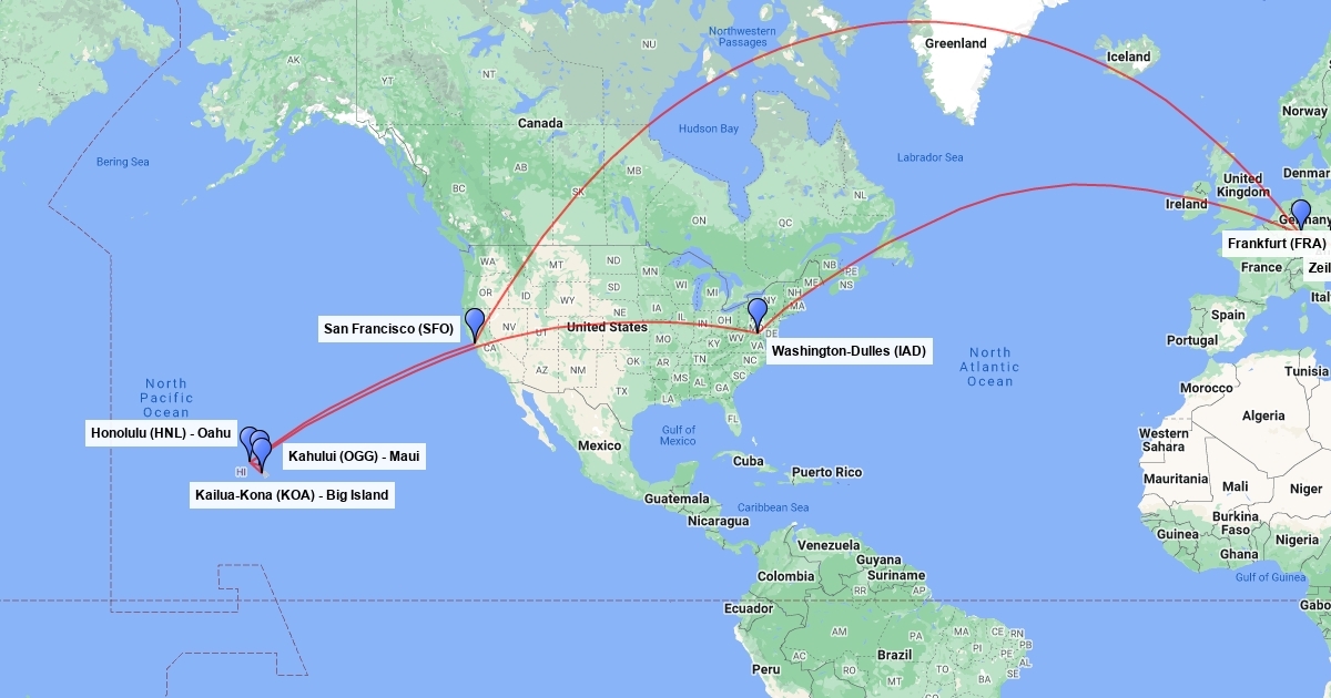 Travel route from home to Hawaii for honeymoon 2012