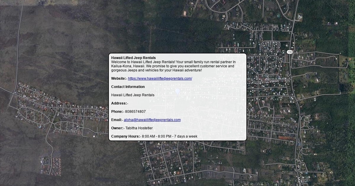 Welcome to Hawaii Lifted Jeep Rentals! Your small family run rental partner In Kailua-Kona, Hawaii. We promise to give you excellent customer service and gorgeous Jeeps and vehicles for your Hawaii adventure!