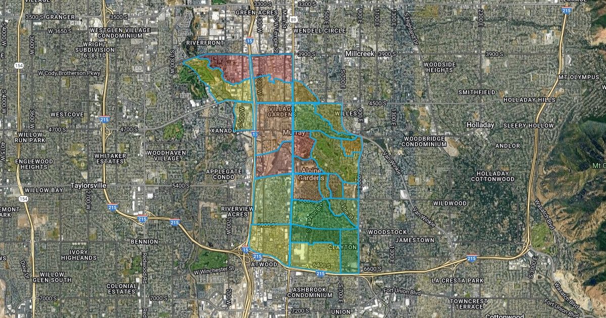 This map shows the income range for the boundaries of Hillcrest Jr High in MCSD. Red being Low, Yellow being Average, and Green being High.
