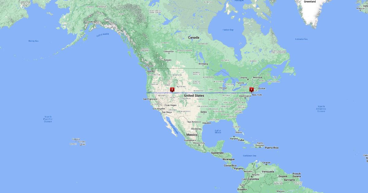 Straight line across USA from home
