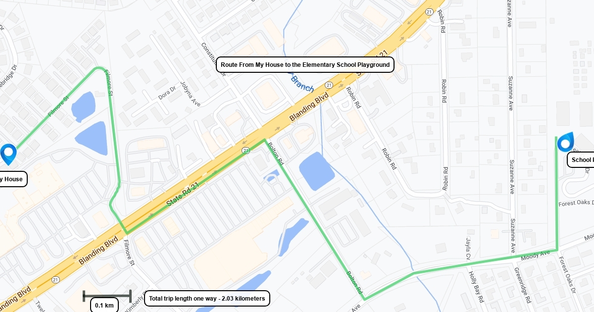 Route from my house to the Elementary school playground