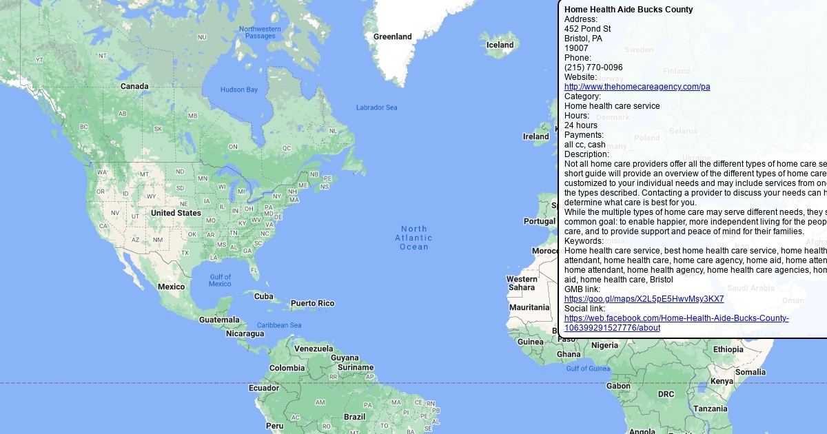 Address: 452 Pond St Bristol, PA 19007 Phone: (215) 770-0096 Website: http://www.thehomecareagency.com/pa Category: Home health care service