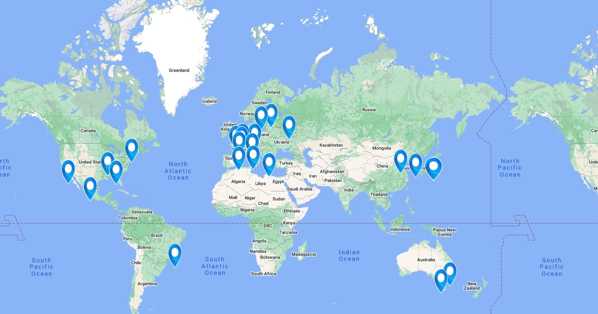 Locations of the past and future Modern Summer Olympic Championships