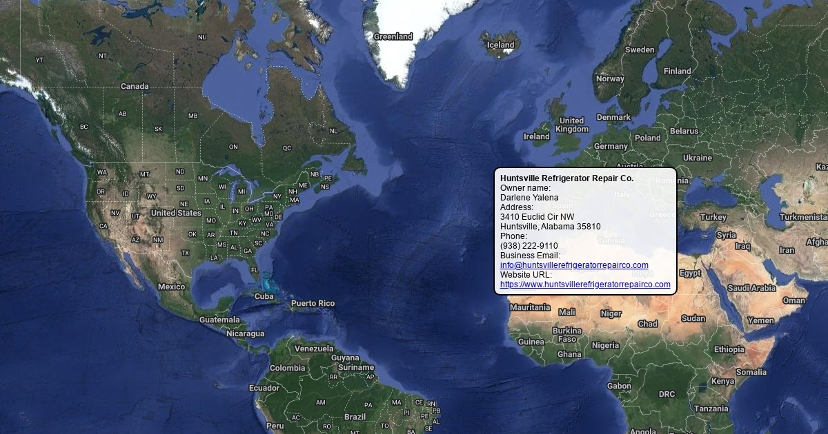 Owner name: Darlene Yalena Address: 3410 Euclid Cir NW Huntsville, Alabama 35810 Phone: (938) 222-9110 Business Email: [email protected] Website URL: https://www.huntsvillerefrigeratorrepairco.com