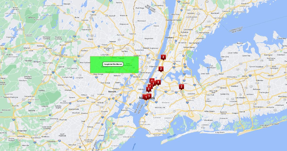 Nella mappa sono segnati alcuni luoghi visti nei film Marvel
