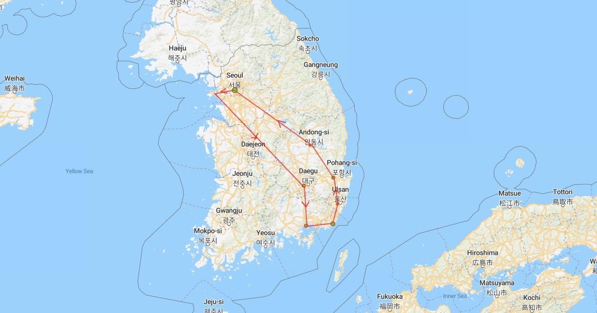 Incheon-Daegu-Jinhae-Busan-Gyeongju-Andong-Seoul