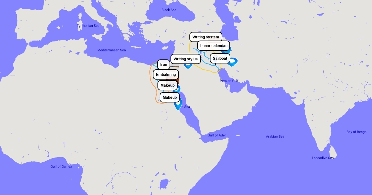 map of innovations from ancient civilizations